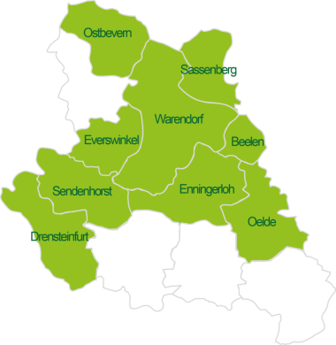 Zu der LEADER-Region gehören die Städte und Gemeinden Beelen, Drensteinfurt, Ennigerloh, Everswinkel, Oelde, Ostbevern, Sassenberg und Sendenhorst sowie die Ortsteile der Stadt Warendorf .