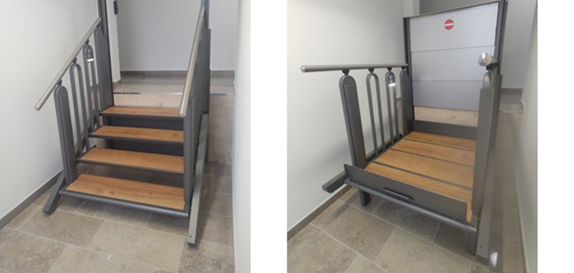 Der barrierefreie Umbau der Verwaltungsgebäude ist jetzt abgeschlossen. Als letzte Maßnahme wurde im Historischen Rathaus der Zugang vom Kirchplatz mit einer neuen Hebeanlage ausgestattet. Diese kann sowohl als Hebeanlage wie auch als Treppenanlage genutzt werden (s. Bilder).