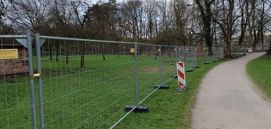 Die Anlieferung erfolgt über den Breuelweg mit einem LKW. Insgesamt sind es 400 m Bauzaun. Damit wird eine Baustellenfläche von ca. 150m x 50m (ca. 7500 qm) abgesichert. Die Baustellensicherung durch Bauzäune wird zunächst keine Beeinträchtigungen für die Besucher des Emsseeparks mit sich bringen. Alle Fuß- und Radwege sind weiterhin befahrbar.
