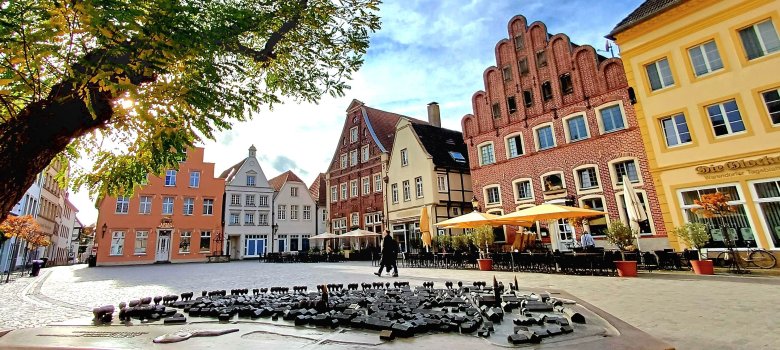 Das geschlossene Ensemble historischer Hausfronten gehört trotz oder gerade aufgrund der Tatsache, dass Bauwerke aus sechs verschiedenen Jahrhunderten sich hier wieder finden, zu den Höhepunkten unter den Sehenswürdigkeiten Warendorfs. Neben dem Historischen Rathaus sind Häuser mit Treppen- und Blendgiebeln zu sehen. Bunte Drachenköppe und ein prunkvoller Hirsch in der Fassade spiegeln noch den Reichtum der alten westfälischen Hansestadt Warendorf wider. Insbesondere die schönen Giebel und die bunten Drachenköppe tragen zu einer einzigartigen Atmosphäre auf dem Historischen Marktplatz bei.