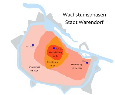 © Stadt WarendorfWarendorf hat sich am Kreuzpunkt zweier Fernwege (Soest-Osnabrück und Münster-Paderborn) entwickelt. Das über mehrere Stufen ablesbare Flächenwachstum der Stadt ist mit der 1232 bezeugten Befestigung und dem Bau der zweiten Pfarrkirche im Westen, abgeschlossen. Der Handel, insbesondere der Leinenhandel, die Leinenweberei sowie zahlreiche Märkte prägten Warendorfs Aufstieg zur bedeutendsten Stadt des östlichen Münsterlandes.