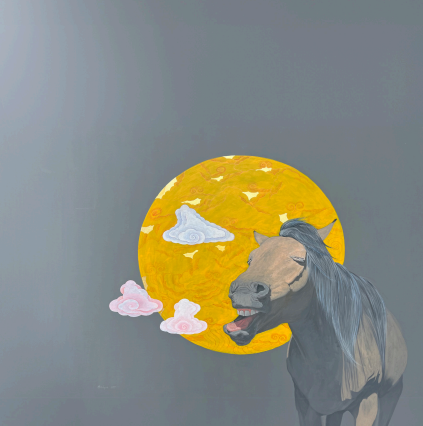 Die Ausstellung DAS GLÜCK DIESER ERDE ist eine Gruppenausstellung mit Werken von 7 mongolischen Künstler*innen, die durch den Kulturgesandten der Mongolei in Deutschland, Gan-Erdene Tsend, kuratiert wird. Bereits 1926 wurden junge Mongol*innen zum Studium nach Deutschland gesandt. Im Jubiläumsjahr der Deutsch-Mongolischen Freundschaft lenkt die Ausstellung in der Galerie des HFM erneut den Blick auf die Kultur der Nomad*innen und auf Darstellungen des Pferdes in der mongolischen Kunst der Gegenwart. Noch heute gilt Deutschland in der Mongolei als „Drittnachbar“ und mehr als ein Prozent der mongolischen Bevölkerung spricht Deutsch. Tsend sieht in den dargestellten Pferden dabei nicht nur Motive, sondern seelische Verwandte der mongolischen Nation. Die ausgestellten Arbeiten der Künstler*innengruppe umfassen Malerei, Grafiken und Fotografien bis hin zu Skulpturen.