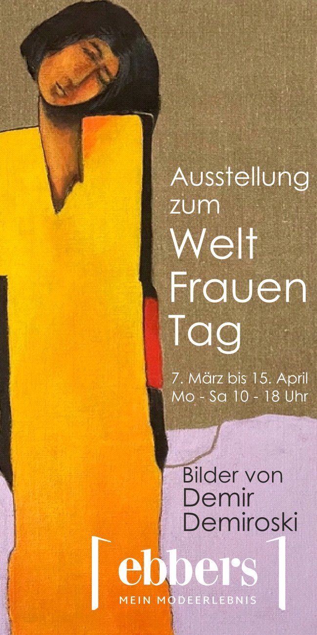Passend zum Weltfrauentag am 8. März startet die neue Ausstellung in der ebbers-Galerie mit Bildern von Demir Demiroski. Der Künstler hatte viele Jahre Atelier und Galerie im Warendorfer Elsberghaus, bevor er seinen Wohnsitz nach Kamen verlegte.