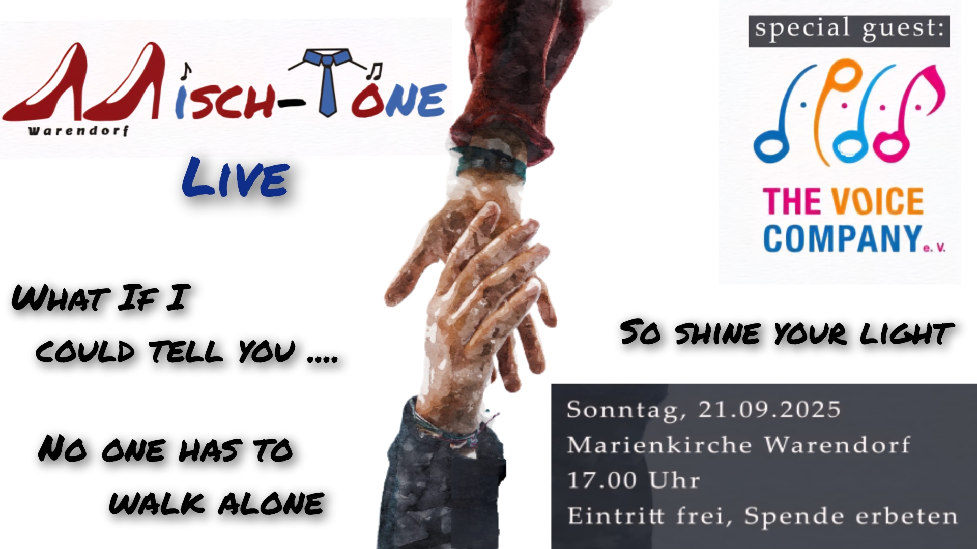 Der Warendorfer Chor „Misch -Töne“ veranstaltet am 21.09. ,in der Marienkirche, ein Konzert. Beginn ist um 17.00 Uhr.