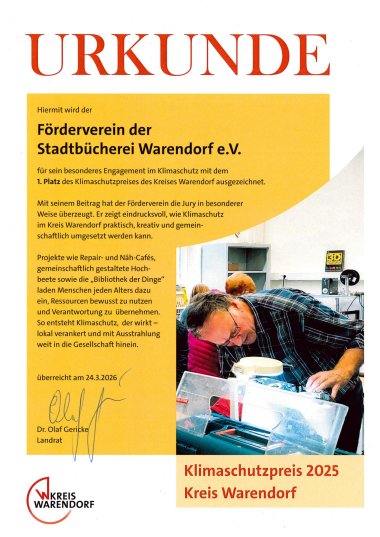 Mit seinem Beitrag hat der Förderverein die Jury in besonderer Weise überzeugt. Er zeigt eindrucksvoll, wie Klimaschutz im Kreis Warendorf praktisch, kreativ und gemeinschaftlich umgesetzt werden kann.