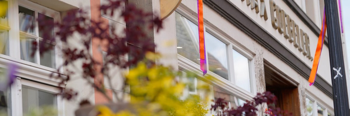 Lange Tische, Sitzbänke und Stehtische sind die Kulisse für Gespräche, Essgenuss und lautes Lachen – das alle auf dem Wilhelmsplatz!Oststraßen-Flohmarkt Samstag von 8 - 16 Uhr