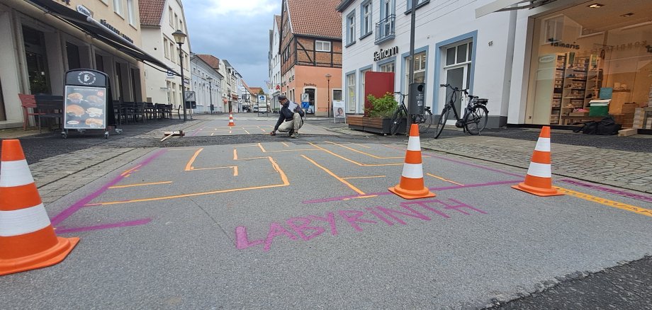 Zum Warendorfer Altstadtfrühling am kommenden Wochenende soll die Münsterstraße mit bunten Spielmöglichkeiten für Jung und Alt zum Verweilen einladen. Die als temporäre Bodenbemalung aufgebrachten Spielflächen werden in diesen Tagen von einem Street Art-Künstler gestaltet.
