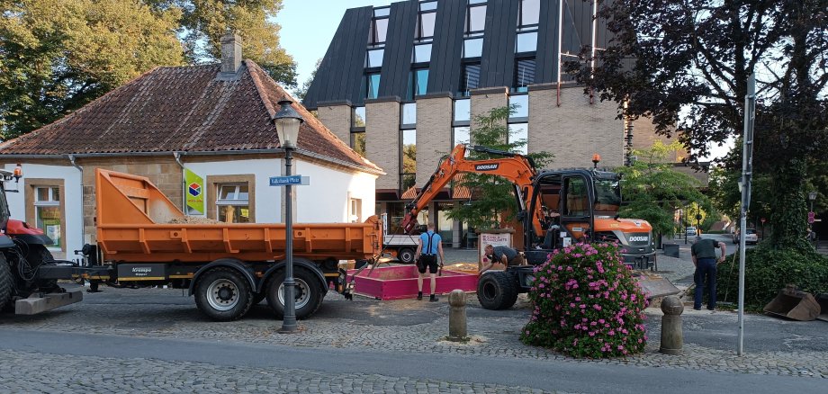 Für die Aufbauarbeiten der anstehenden Pferdenacht wurde heute wie angekündigt der Altstadtsandkasten vor der Volksbank an der Münsterstraße abgebaut.Dort wird in der nächsten Woche ein Getränkewagen stationiert.