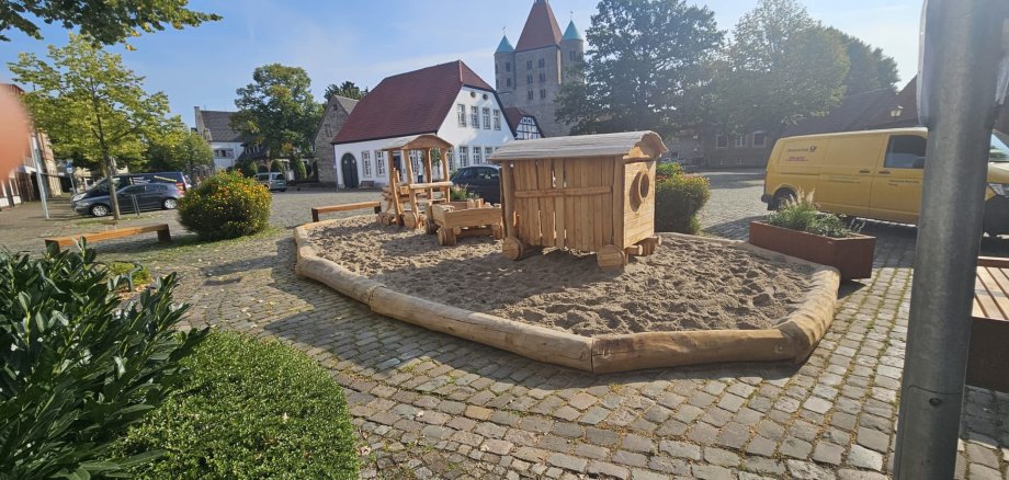 Einen großen Meilenstein im zu Ende gehenden Jahr war die Eröffnung des neugestalteten Stiftsmarktes am 06. September 2024. Durch einen temporären Verkehrsversuch wurde der Stiftsmarkt so umgestaltet, dass er verkehrsberuhigt und ansprechend für alle Generationen ist. Neue Sitzgelegenheiten, Begrünungselemente, Spielelemente für Kinder und zusätzliche Fahrradständer schaffen einen einladenden Raum mit hoher Aufenthaltsqualität, der Begegnungen und Austausch in den Mittelpunkt rückt. Dank der Spende des Spielwarenhauses Kieskemper konnte eine Spielkiste mit verschiedenem Spielzeug bereitgestellt werden, die insbesondere die kleinen Freckenhorsterinnen und Freckenhorster zum Spielen auf dem Stiftsmarkt einlädt. Kinder und Jugendliche können die Spielkiste in den Sommermonaten im Eiscafé Bohne und im Winter in der gegenüberliegenden katholischen Bücherei St. Bonifatius ausleihen.