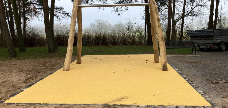 Neuigkeiten vom Piratenspielplatz in Warendorf: der synthetischer Fallschutzboden ist schon erstellt, die Zuwegung ist auch schon fertig. Und Anfang Januar kommt dann die erste Schaukel für Kinder mit Beeinträchtigungen nach Warendorf.