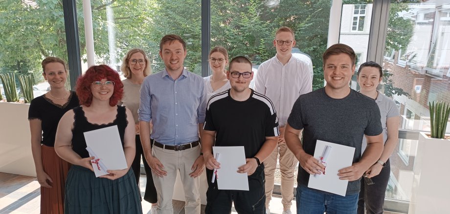 Sechs Nachwuchskräfte haben erfolgreich ihre Ausbildung bei der Stadt Warendorf beendet. Dazu sprach Bürgermeister Peter Horstmann seine Glückwünsche, aber auch seinen Dank aus. „Ich freue mich, dass einige von ihnen ihre berufliche Karriere bei der Stadtverwaltung fortsetzten werden.“ Zwei weitere junge Menschen werden ihre Ausbildung in der Stadtverwaltung mit Bachelor-Abschluss im August beenden.