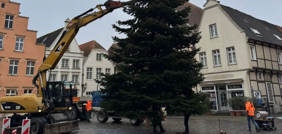 Heute wurde der 13 Meter hohe Weihnachtsbaum für den Warendorfer Marktplatz aufgestellt. Am Morgen ist er von Mitarbeitern des Baubetriebshof im Warendorfer Norden gefällt worden. Der Baum ist eine Spende der Handwerksbau AG und steht bereits auf dem Marktplatz.
