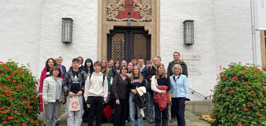 Eine Gruppe von Schülern aus der polnischen Partnerstadt Olesnica ist am Morgen von der stellvertretenden Bürgermeisterin Doris Kaiser im historischen Rathaus der Stadt Warendorf empfangen worden. 14 Jugendliche aus Polen sind seit Sonntag bei Gastfamilien in Warendorf. Sie waren in Begleitung von deutschen Schülern des Lau am Rathaus Der Schüleraustausch wird organisiert gemeinsam mit dem Gymnasium Laurentianum. Der Besuch führt die polnischen Jugendlichen noch nach Oberhausen, Enschede und Köln und endet am Freitag. Der Austausch wird gefördert durch das Deutsch-Polnische Jugendwerk.