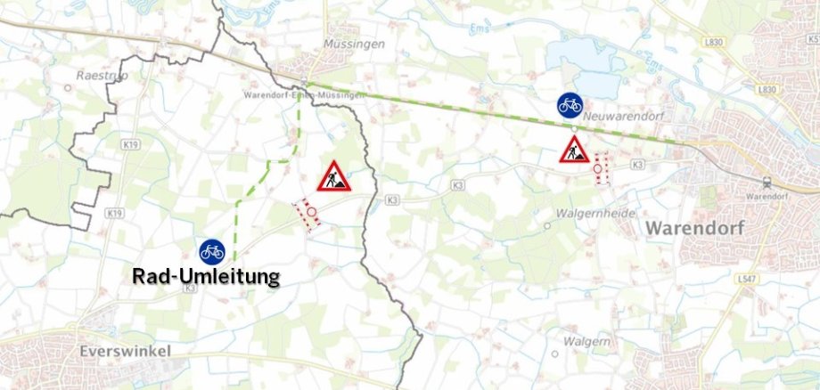 Die Bauarbeiten am Radweg entlang der K3 dauern wie geplant an. Er bleibt daher bis voraussichtlich Ende April 2026 voll gesperrt. Die ausgeschilderte Radfahrerumleitung bleibt bis zum Ende der Baumaßnahme bestehen.