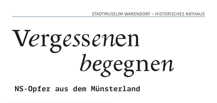 Das jahrelange Wegsehen gab für Peter Schilling, vom Verein „Spuren finden e.V.“ den Ausschlag für „Vergessenen begegnen". In Kooperation mit dem Verein gestalteten Studierende der "Münster School of Design" (FH Münster) unter der Leitung von Prof. Claudia Grönebaum die Ausstellung. Kernstück sind Originalquellen, die von Biografien einzelner Menschen berichten. Besuchende haben die Möglichkeit, sich zum Beispiel über Tonspuren oder interaktiv über ausziehbare Schubladen zu informieren. Eigentlich als feste Ausstellung für die Räumlichkeiten der Bezirksregierung Münster entwickelt, ist sie aufgrund einer Vielzahl von positiven Rückmeldungen als Wanderausstellung umfunktioniert worden und ist seitdem an unterschiedlichen Standorten im Münsterland zu Gast – wie jetzt in Warendorf.