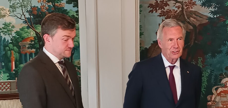 Bundespräsident a.D. Christian Wulff hat sich heute in das Goldene Buch der Stadt Warendorf eingetragen. Wulff war zu einer Veranstaltung in der Stadt und wurde vorher von Bürgermeister Peter Horstmann im Tapetensaal empfangen. In seiner kurzen Ansprache würdigte der Bürgermeister die Verdienste des ehemaligen Bundespräsidenten um das demokratische Miteinander, das gesellschaftliche Engagement und seine kontinuierliche Stimme für Zusammenhalt und Toleranz.