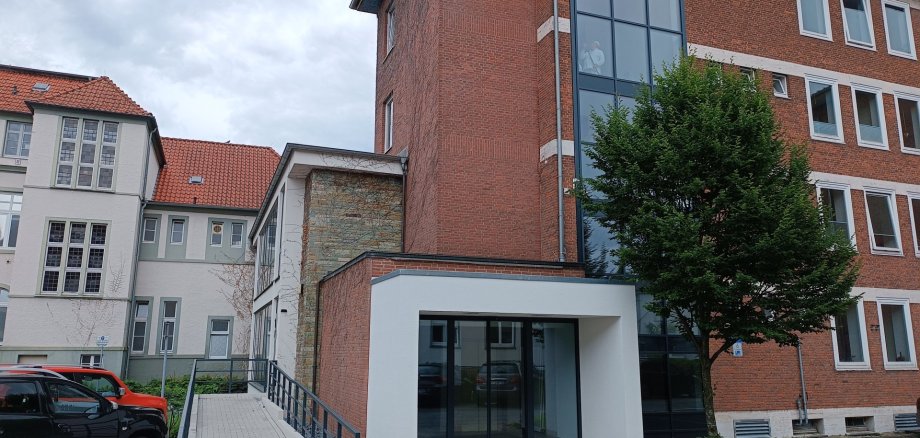 Die Sanierung des rückwärtigen Bereichs der Stadtverwaltung, Lange Kesselstraße 4-6, ist abgeschlossen. Dabei wurde die alte Betonwabenfassade ausgetauscht und der Hintereingang der Stadtverwaltung ist barrierefreier gestaltet worden.