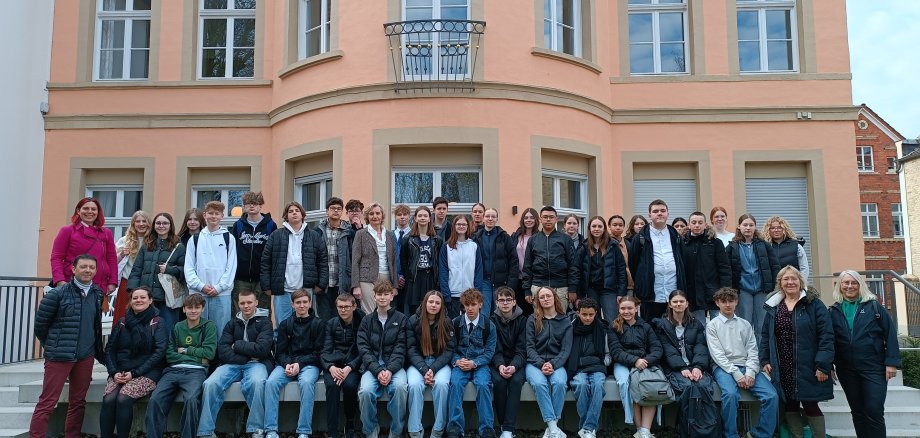 Eine Gruppe von Schülern aus der französischen Gemeinde Étrépagny und der Nachbarstadt Girsors in der Normandie mit ihren deutschen Austauschschülern vom Mariengymnasium (MGW) ist am Morgen erneut von der stellvertretenden Bürgermeisterin Doris Kaiser empfangen worden. Anlass des Empfangs war das 10-jährige Bestehen der Schulpartnerschaft zwischen MGW und den zwei Schulen aus Étrépagny und aus der Nachbarstadt Girsors.
