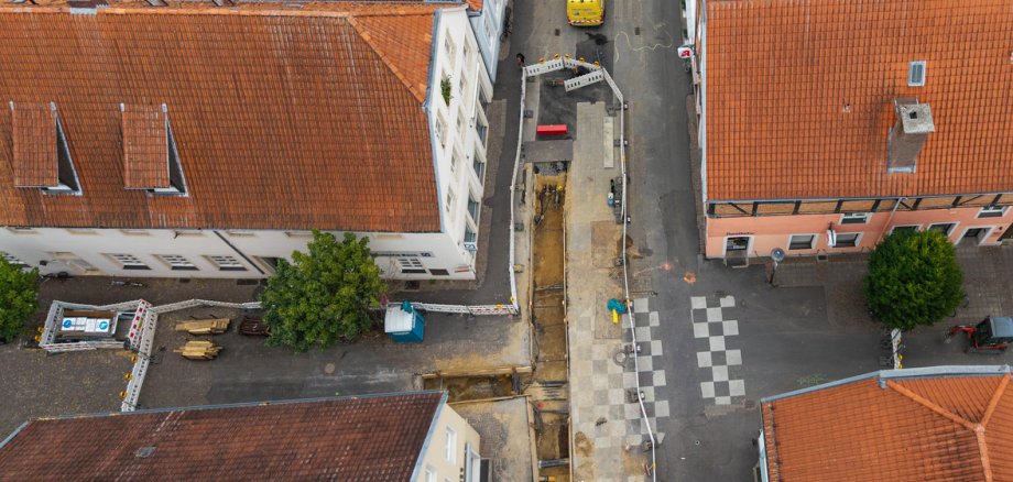 Die laufende Baustelle für die Umsetzung des Wärmenetzes hat gezeigt, dass die Erschließung der Ladenlokale und Gebäude auch in längeren Bauabschnittsbereichen sichergestellt werden kann. Zur Erreichung des Ziels einer möglichst schnellen Umsetzung und Fertigstellung des Straßenbaus kann diese Erfahrung auf die Straßenbaustelle übertragen werden: