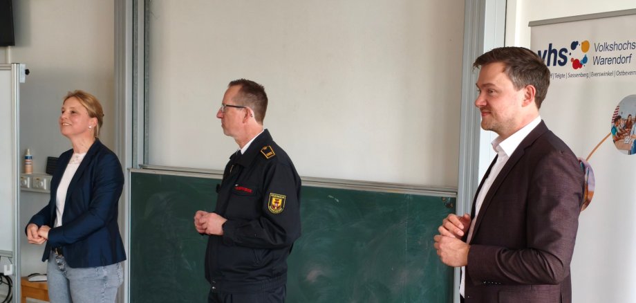 Im Rahmen der Abschlussveranstaltung würdigten Bürgermeister Peter Horstmann und VHS-Leiterin Dr. Mareike Beer das Engagement der Teilnehmenden sowie die erfolgreiche Zusammenarbeit aller Beteiligten. Beide dankten ausdrücklich für die große Resonanz und das Interesse an der Reihe. Der Dank ging auch an die Feuerwehr Warendorf für die Organisation und die weiteren beteiligten Rettungsdienste, die sich am Abend auf einem "Markt der Möglichkeiten" präsentierten.