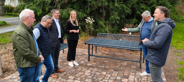 Die neue Sitzgruppe an der Stadtstraße Nord (Ecke Lange Wieske) ist heute offiziell ihrer Bestimmung übergeben worden. Das Projekt wurde von der Bürgerstiftung Warendorf organisiert und gemeinsam mit lokalen Partnern finanziert. Vertreter der Bürgerstiftung sowie der beteiligten Sponsoren kamen jetzt mit Bürgermeister Peter Horstmann zur Einweihung zusammen.