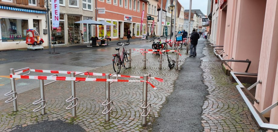 Im Zuge der Erneuerung der Fußgängerzone müssen die Fahrradständer vor der Sparkasse in der Münsterstraße entfernt werden. Die Demontage erfolgt am Freitag, 16. Januar 2026.