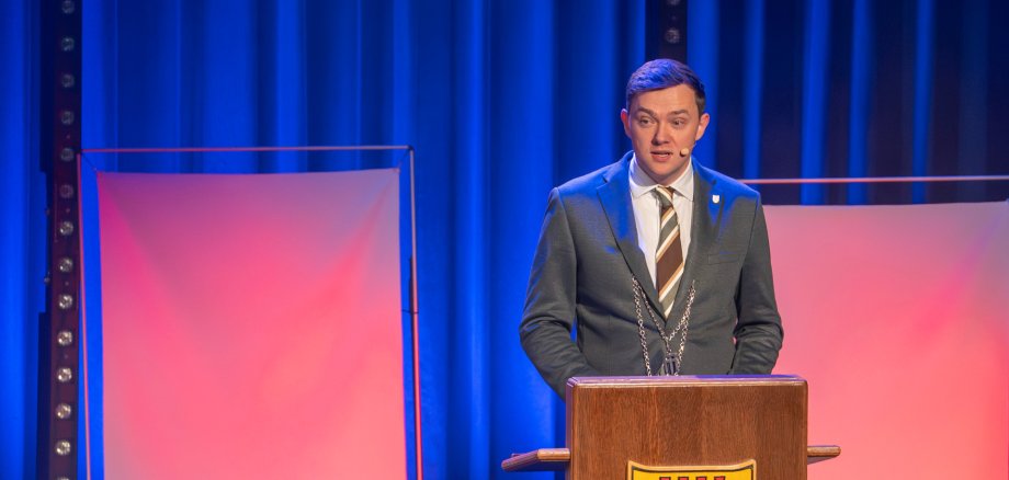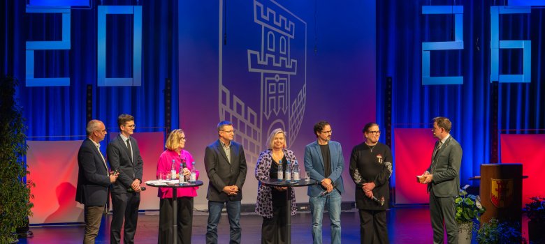 Bürgermeister Peter Horstmann hat das Jahr 2026 beim Neujahrsempfang der Stadt Warendorf im Theater am Wall gestartet. Statt einer klassischen Begrüßung überraschte der Bürgermeister das Publikum mit einer „Rakete“. In seiner Rede griff Horstmann anschließend das Thema "Neujahrsvorsätze" auf – mit Zitaten und Bildern unterlegt. Außerdem ging es in einer Gesprächsrunde um das politische Ehrenamt.