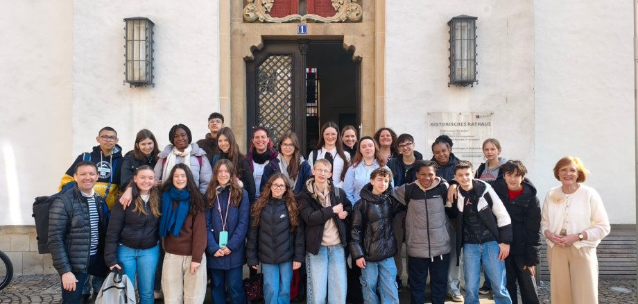 Eine Gruppe von Schülerinnen und Schülern aus der französischen Stadt Etrepagny ist am Morgen von der stellvertretenden Bürgermeisterin Andrea Blacha im historischen Rathaus der Stadt Warendorf empfangen worden. Blacha legte in ihrer Ansprache besonderen Wert auf die deutsch-französische Freundschaft und die Bedeutung von länderübergreifender Freundschaft gerade bei jungen Menschen.