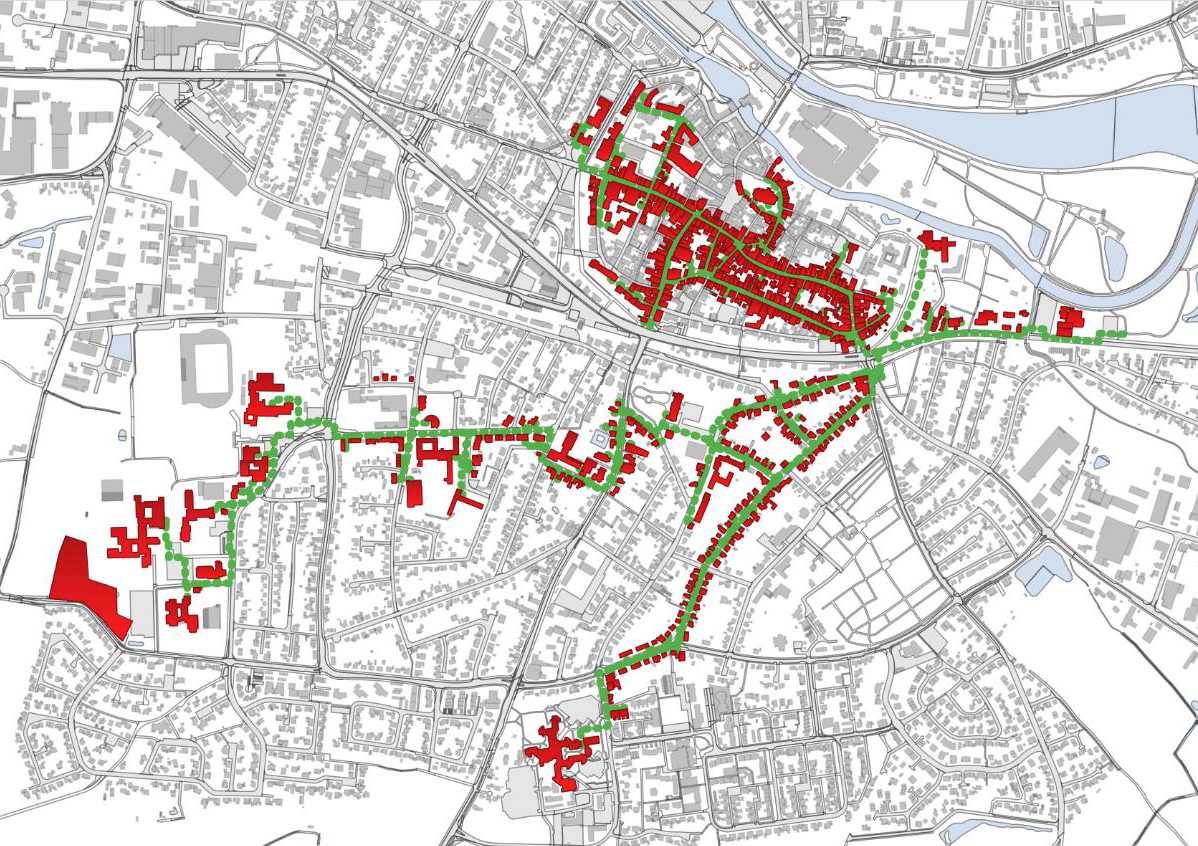 Das Wärmenetz für die Altstadt ist der Ausgangspunkt für eine Wärmeversorgung großer Innenstadtbereiche mit regenerativen Energien. Die Altstadt soll in einem ersten Projektabschnitt angeschlossen werden. Ein zweiter Strang bewegt sich Richtung Schulviertel und Kreishaus. Angrenzende Gebäude und Straßen sind dabei immer einzubeziehen. Sie können bei einer spätere Nachverdichtung des Netzes angeschlossen werden.
