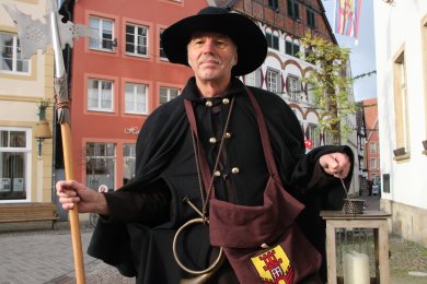 Natürlich schützt der Nachtwächter auch seine Begleiter*innen während des Rundgangs vor betrunkenen Gesindel, Strauchdieben und anderen Gefahren. So können alle Teilnehmenden sorglos in seine Geschichten eintauchen und Warendorf von einer neuen und unbekannten Seite kennen lernen.Triumphbögen und Trompetenklänge - Führung zum Heimatfest Mariä Himmelfahrt